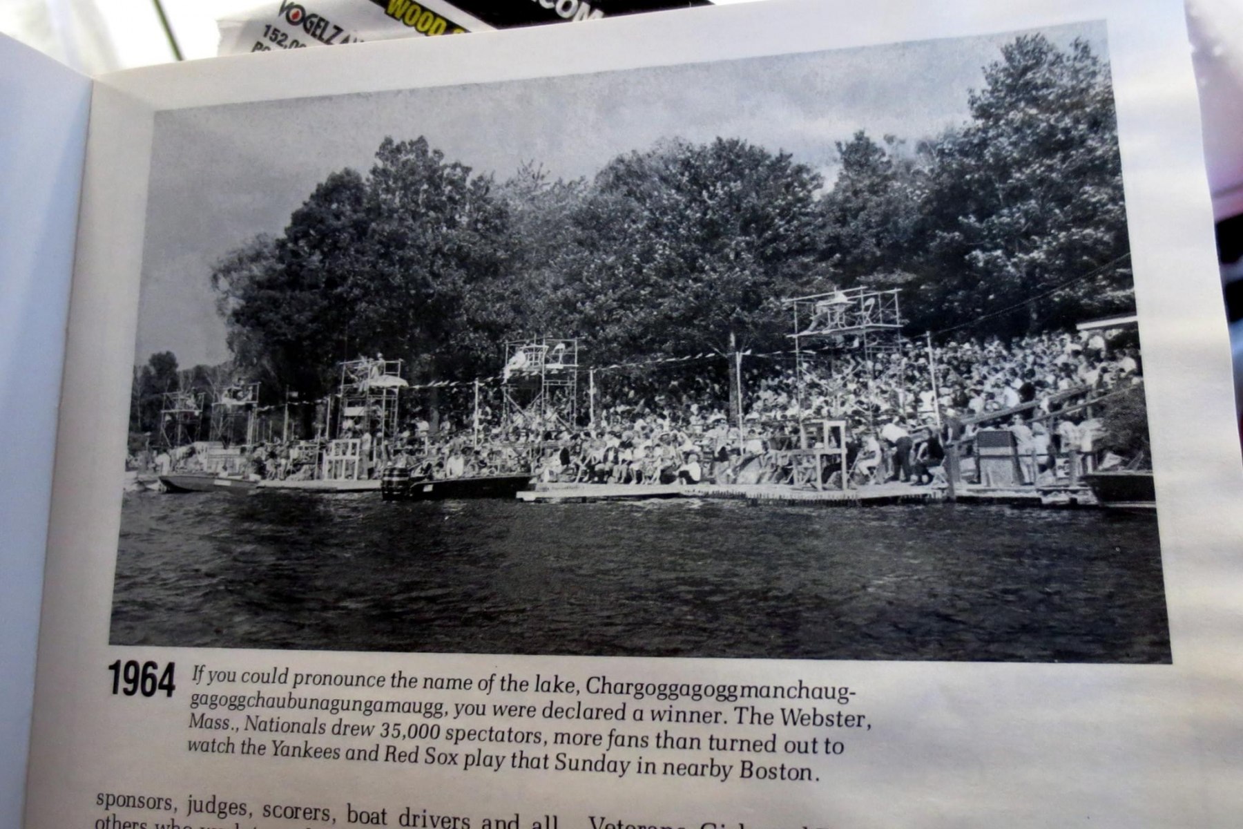1963-1964: The club hosted the National Water Ski Tournament at Memorial Beach. Ron Cardin an Bob Harris were co-chairmen of the Host Committee. Ray Blair was Tournament Director. The town renamed Ben’s Cove to Nipmuc Cove in honor of the club.